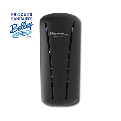 Diffuseur Eco Tower noir, élégant et discret, conçu pour libérer progressivement un parfum agréable dans les espaces sanitaires et communs. Son design vertical permet une diffusion optimale tout en s’intégrant facilement à tout type de décor.
