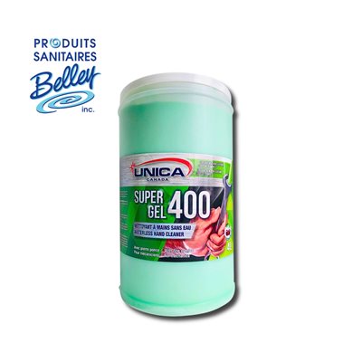 Le 400-Super Gel est un nettoyant à mains en pâte molle de couleur verte, enrichi d’un abrasif naturel à base de pierre ponce. Conçu pour éliminer les salissures industrielles les plus tenaces, il peut être utilisé avec ou sans eau, offrant une flexibilité maximale. Son action de récurage en profondeur déloge efficacement graisse, cire, encre, peinture, goudron, carbone, adhésifs, asphalte et gomme d’épinette. Parfumé à la cerise, il laisse une sensation de propreté et de fraîcheur.